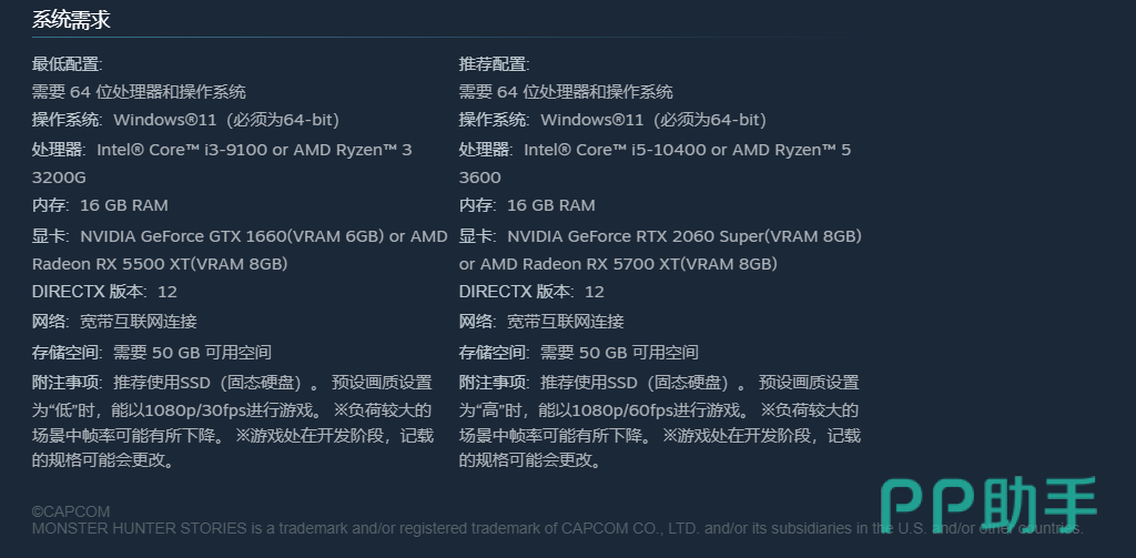《怪物猎人物语3》作为Capcom旗下经典IP的全新续作,将于2024年3月13日正式发售,部分平台支持3月11日提前预载。随着发售日临近,玩家普遍关注其PC端运行门槛——尤其是能否在主流中端配置上实现稳定帧率、是否对显卡和存储提出过高要求等问题。本文将基于Steam官方公布的系统需求,结合实际场景表现,为玩家提供清晰、客观的配置解析与实用建议。