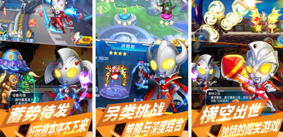 所有人们耳熟能详的奥特英雄角色全部在线,比如迪迦或者有赛文等等,讲述的就是当人类所生活的地球中出现大量的怪兽入侵时,大家将化身为奥特英雄的角色,通过组建防御塔,或者是利用策略部署的方式,将所有敌人彻底击败。还设立独特的变身系统,当其中的人物角色积累大量的能量之后,就可以触发变身效果,大幅度提升了战斗实力。在多样化地图或者是逼真的场景中随意切换。