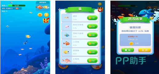 这款鱼吃鱼手游有着简单的操作跟卡通生动的美术UI,你将扮演海洋中的小小鱼类完成形形色色的吞噬任务,任务体系众多配以真实的海洋环境更具参与感,这款APP给玩家提供的互动性更高同时操作也简单,还可在商城购买各种小鱼的皮肤,五彩斑斓的海底世界背景提供了不俗观赏性。