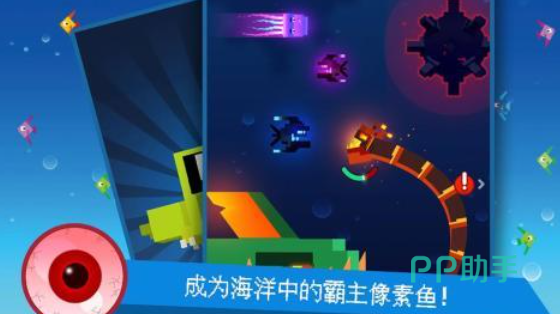 欢迎吞噬游戏爱好者进入像素世界完成个性化的吞噬任务,在这款手游中玩家可化身像素小鱼在深海世界吞噬,吞噬进化的主题任务增添了整体的可玩性,吞噬进化理念特殊再结合超大地图更有耐玩性,海底世界有着许多的像素生物可以解锁,高互动性和高耐玩性的内容呈现吸引了更多粉丝。