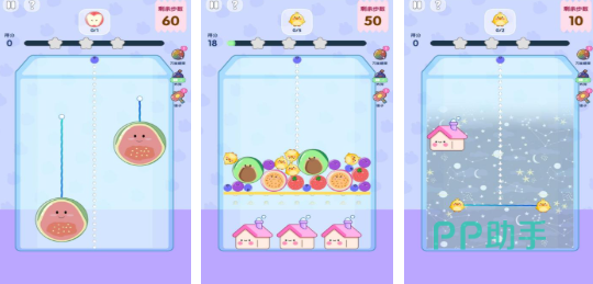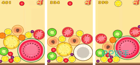 这是一个进阶的版本,在经典的合成基础上又加入陷阱、空间限制,还有障碍等一系列难题。部分的关卡只有狭小的区域,因此玩家就需要算着每一个水果掉落的地方。难度梯度平滑,有简单的,有复杂的,会循序渐进,新手慢慢就可以适应。