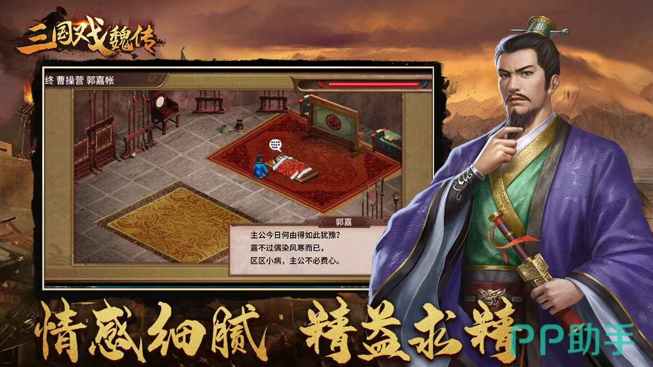 本作严格依据《三国志》《后汉书》等正史文献构建世界观,刘备视角贯穿始终,拒绝演义化改编。每位登场武将均配有独立列传系统,战场对话采用半文言表达,辅以注释解析,兼顾考据性与可读性。战棋系统加入动态迷雾机制(可视范围随单位移动实时刷新)与四时天气系统(雨天降低火系命中、雪地限制移动力、大风影响远程射程),每场战斗需综合预判环境变量与敌方AI行为模式,凸显真实战场不确定性。
