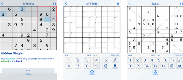 本作严格遵循标准9×9数独规则,聚焦纯粹逻辑推演过程。开局即入关卡,无冗余引导,适配通勤、午休等碎片化使用场景。难度梯度划分明确,从入门级到大师级共设多档位,显著降低试错成本,减少重复验算带来的挫败感,提升解题效率与思维流畅度。