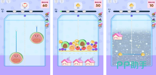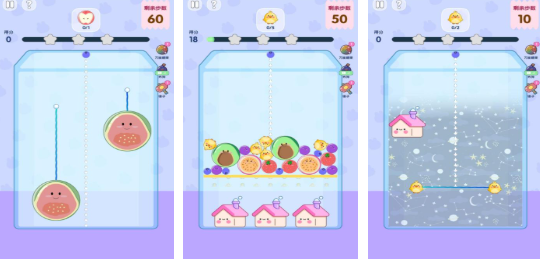 重构传统合成框架,强调目标导向玩法。每局设定明确通关条件,如指定合成尺寸、限定步数内达成分数阈值等。内置重力模拟系统,水果下落遵循真实物理规律,摆放时需兼顾重心平衡,过高堆叠将触发失败判定,提升操作容错门槛。
