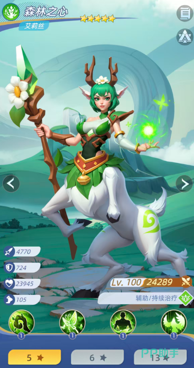 团队治疗与增益模块交由森林之心·艾莉丝承担。其群体治疗技能可为全体友军恢复等同于自身攻击力100%的生命值,并有60%概率附加10%全队攻击力提升;开局即生效的群体增益技能,则使全队受疗效果提高10%,从战斗首回合起便强化续航与回复效率。