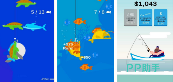 采用极简操作逻辑,三步完成垂钓循环:观察鱼群动向→预判游经路线→快速点击抛竿。卡通渲染风格下,海洋生物色彩饱和度高,动态鱼群具备集群智能行为;核心玩法为限时连击挑战,单次成功钩住6尾鱼触发暴击加成,考验反应速度与空间预判能力,兼具上手门槛低与高手上限高的双重特性。