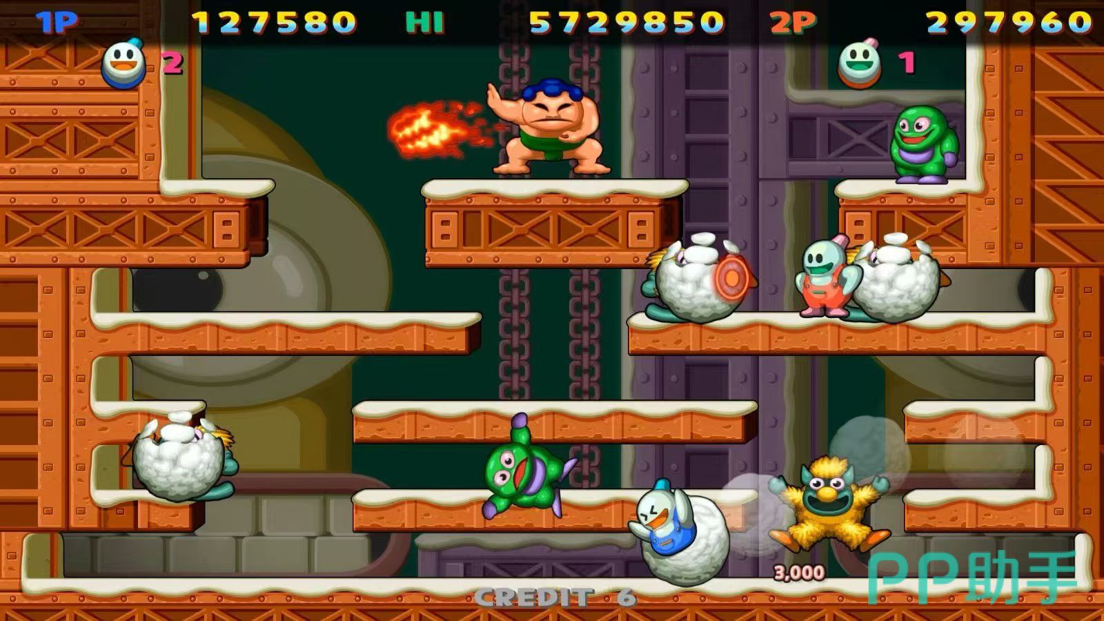 本作由Toaplan于1987年首发,是动作解谜类游戏的早期典范。玩家需掌握雪球投掷、冻结、推动三阶段操作逻辑,利用地形与敌人站位实现高效清屏。关卡设计强调空间利用与时机判断,共含20个主线关卡及隐藏奖励房间,通关后可解锁难度递增的二周目模式。其核心机制影响后续多款推箱类与冻结系玩法作品。