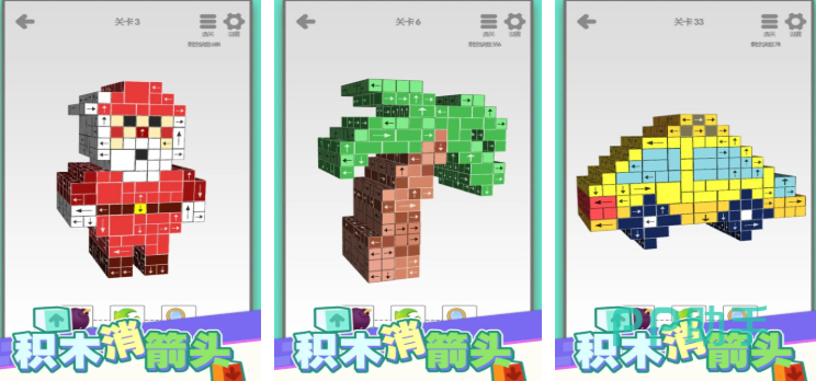 以方向逻辑为核心的消除类玩法,所有积木均带可旋转箭头标识。通过点击或滑动调整单个积木指向,当相邻积木构成闭环路径(如三角形、矩形)或连续单向链路时触发清除。部分积木标注数字,需多次定向匹配方可完全移除,连锁反应机制显著提升策略深度与视觉反馈强度。