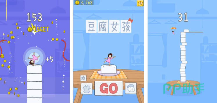 基于软体质物理模拟的堆叠玩法,下落物为具备形变特性的豆腐模块。普通豆腐呈标准立方体,巨型豆腐体积扩大三倍并伴随缓降效果,黄金豆腐则赋予额外积分加成。堆叠稳定性取决于接触面覆盖率与重心投影位置,轻微偏移即引发滑动或坍塌,强调精细操控与风险预判。