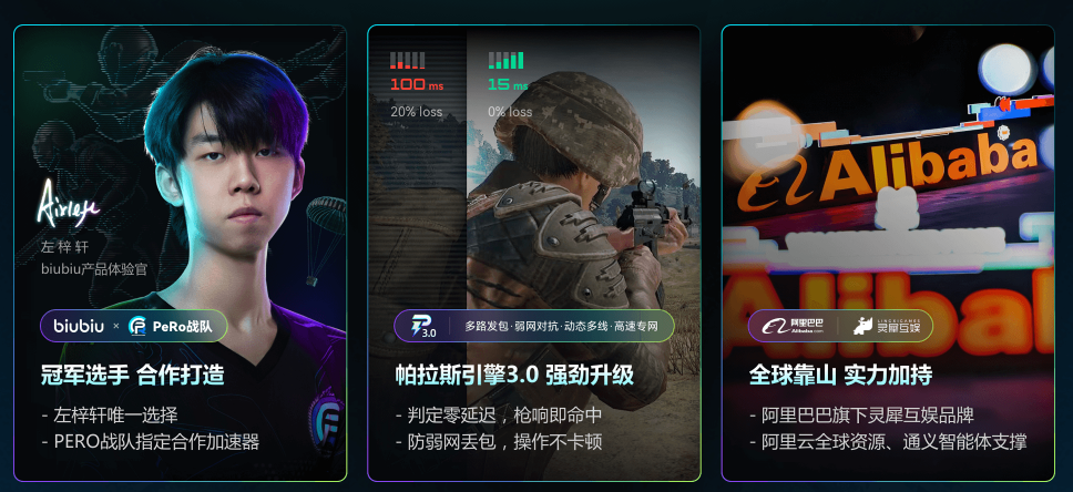 该加速器已获职业电竞选手小叮当公开推荐,并整合九游、交易猫、biubiu加速器三大产品技术体系。依托底层网络优化架构,可主动绕行拥堵路由,保障关键游戏数据优先传输。新用户注册即赠24小时免费加速时长;另提供专属兑换码【biubiu001】,激活后可额外获得3天服务权限。两项权益叠加,新用户最高可享96小时无门槛加速体验。