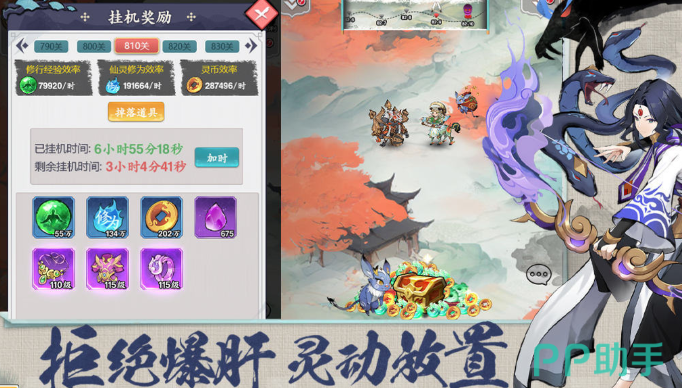 战力成长路径清晰高效:主推“山海图录”大世界探索玩法,玩家可在指定区域开启挂机开荒,系统自动采集灵晶、悟道石、魂魄精华等关键材料;后台运行状态下仍可持续产出经验与进阶资源。为提升单位时间收益,推荐优先配置高等级资源副本作为挂机目标,确保资源转化效率最大化。