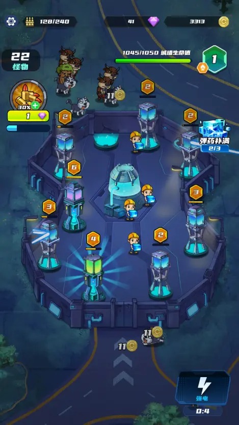 驾驶战车深入外星生物盘踞的秘密基地执行人质营救任务,同步推进装备等级提升。地牢场景为程序化生成,需依据地形特征灵活布设防御塔位;击败关卡内普通Boss及最终Boss后,将触发随机奖励掉落机制;护盾、双弹、暴击三类主动技能具备敌方状态压制效果,命中后触发冷却判定,为后续输出创造窗口期。