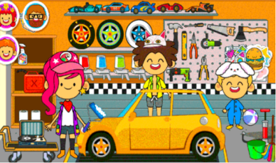 本作突出“问题解决”教育目标,塑造糖糖兼具公主身份与专业维修技能的双重角色形象。小镇中各类故障物品(如卡顿的旋转木马、漏气的自行车、断线的秋千)均需玩家使用扳手、螺丝刀、胶水等拟真工具进行诊断与修复。操作流程符合基础机械原理,辅以30余款主题贴纸作为完成奖励,强化正向反馈。每一次成功复原,都在潜移默化中培养孩子的观察力、耐心与责任意识。