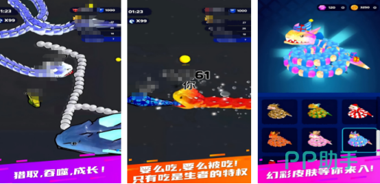 主打多人在线同图竞技模式,支持实时匹配多支队伍进入同一战场。地图随机分布高价值食物资源,玩家需在高速移动中完成双重目标:一是高效采集散落食物以提升体长;二是主动拦截并吞噬体型小于自身的对手蛇体,实现战力压制。胜负关键取决于反应速度、路径预判与围堵策略的综合运用。