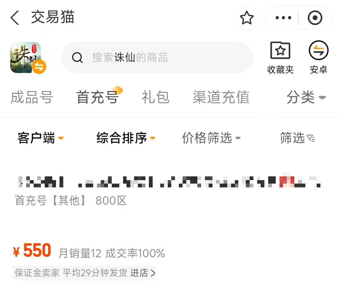 综上,《诛仙》端游账号交易路径现已高度成熟,尤其依托交易猫平台提供的审核保障、价格工具、代练支持及多样化账号类型(如成品号、首充号),用户可高效完成从选购到使用的全流程操作,整体交易体验安全、便捷、可控。