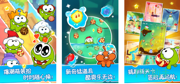 延续前作核心机制的益智闯关游戏。玩家通过精准剪断绳索,利用重力、摆动、弹簧、气流等物理要素,引导糖果落入怪物口中。新增角色换装系统与动态场景机关,每关设有三颗星星评级标准,鼓励多路径尝试。关卡节奏明快,失败无惩罚,强调即时反馈与微操快感。