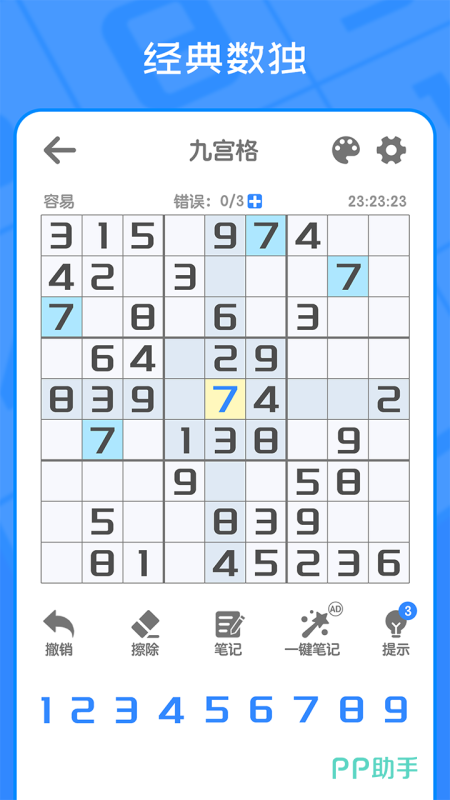 强调竞技感与效率提升的成熟型数独工具。支持初级至地狱级五档难度自由切换;所有关卡内置实时计时器,可查看历史用时与排名;提供铅笔标记、一键清除、错误高亮等实用辅助功能,兼顾新手学习与高手速解双重场景。