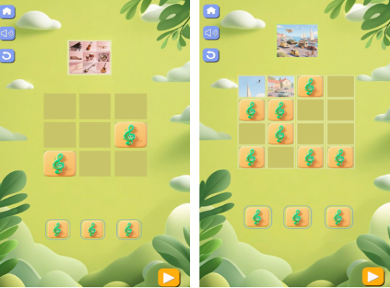 融合听觉识别机制,每块拼图内嵌独立音频片段(如鸟鸣、流水、钟声等环境音效),玩家需依据声音特征判断相邻关系。前50关提供视觉辅助提示,后续关卡逐步关闭图像预览,仅保留轮廓线与声纹波形图。该设计显著提升对细节辨识力与短期记忆容量的要求,符合专业认知训练标准。