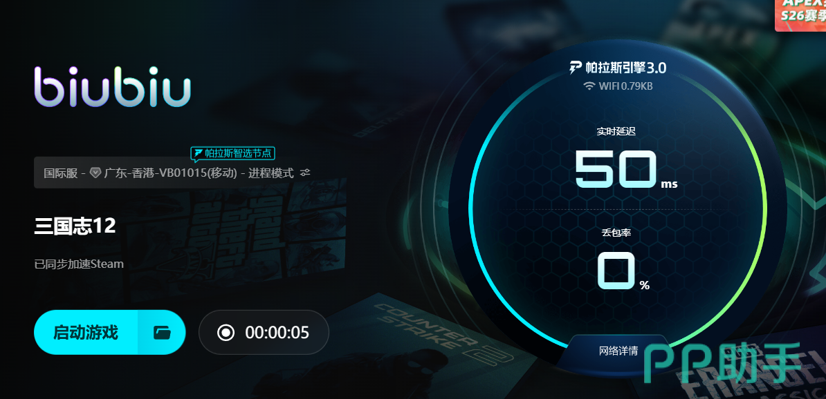 依托与职业选手Aixleft的技术协作,biubiu加速器集成帕拉斯引擎3.0,可精准识别《三国志12》易触发崩溃的数据交互节点,优先保障征兵指令、城防升级、同盟协议等核心战略指令的传输优先级与完整性。该引擎具备动态路径选择与网络波动预判能力,即便在跨运营商、高延迟或弱网环境下,仍能维持低抖动、高可靠的游戏连接质量,从而显著降低因网络异常导致的闪退概率。