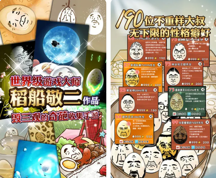一款主打荒诞趣味的解压小品。核心流程为煮蛋—剥壳—观察面部特征。每颗熟鸡蛋剥开后均随机呈现一张具象化“大叔脸”,五官比例、胡须形态、神态细节各不相同,总计收录超190种独立面部模板。其反套路设计弱化传统游戏目标感,强调偶然性与重复探索带来的新鲜感。