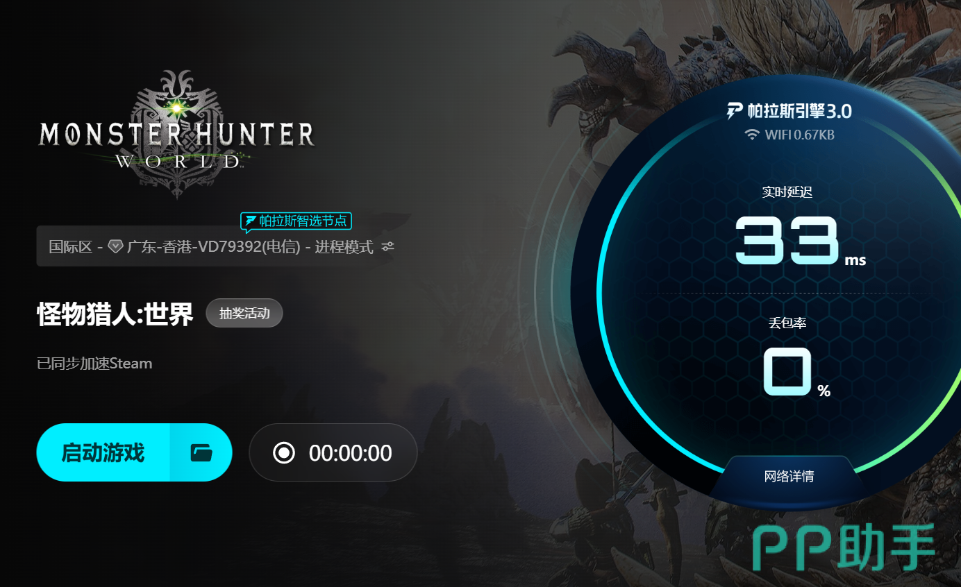 新用户注册即可获得24小时全游戏免费加速权限,覆盖Steam、PlayStation Network及Microsoft Store平台的《怪物猎人:世界》客户端。输入激活码【biubiu不卡顿】,还可额外领取72小时高级会员服务,享受优先带宽保障与专属低延迟通道。操作流程极简:启动软件→搜索“怪物猎人:世界”→点击“一键加速”→自动完成协议优化与路由切换,全程无需手动配置IP或修改主机网络参数。
