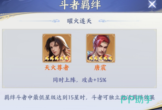 斗破苍穹手游唐震怎么样在大家玩他的时候,其实除了基础的技能运用之外,后期上场除了天火尊者,还可以搭配其他火系角色尝试一下配队,比如萧炎、药老之类的斗者大家也是可以看看能不能放在一起用,能够强化他火系爆发效果的话阵容就是可以用的哦。