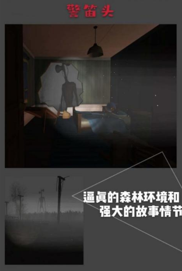 都市怪谈中很知名的警笛头将在此作中现身,玩家也将成为它追击的目标,不管到哪都会被它给追上,所以为了能从警笛头的手里活下去并完成逃生,玩家不得不想尽一切办法解开那些怪异的谜题,让自己能找到对抗警笛头的办法和一条能令自己远离它的出路。游玩时玩家们会时时刻刻受到警笛头的威胁,整体的节奏非常快,紧张氛围拉满,并且画面和音效也都很有感染力。