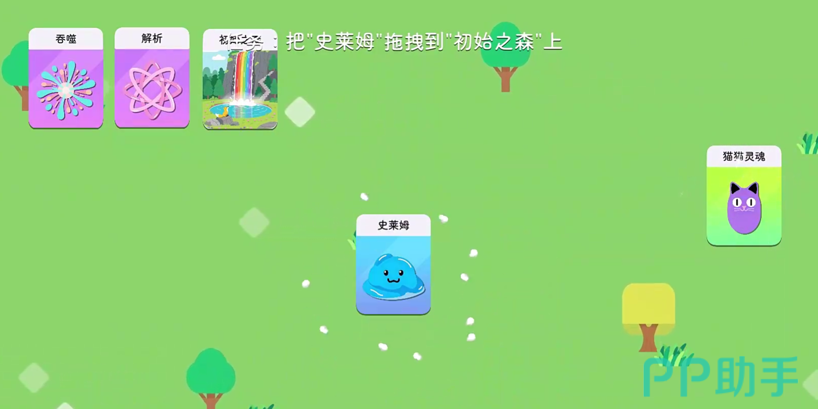 游戏的整体玩法已经打破了原本的升级打怪的老套路,在游戏中,玩家们只需要专注于弱小魔物的成长即可,在开局,玩家们就可以获得软萌的史莱姆,史莱姆的成长成为了玩家们需要关注的问题,而这些角色以及各种技能都将以卡牌的形式呈现在玩家们面前,卡牌拥有着各种知识属性以及技能权限,玩家们可以自由搭配这些卡牌,打造出独属于自己的强势史莱姆,这也导致了我们需要玩家们对于策略有一定的学习能力,要知道,在游戏中的各种技能学习,都可能会造成多种进化分支,这就需要玩家们提前做好规划。