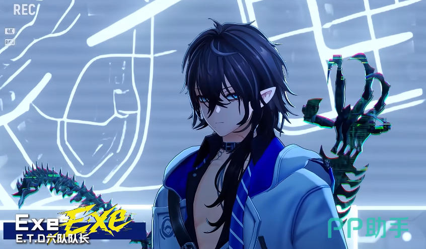 接下来是EXE,这个角色其实是有一些赛博朋克风格的元素在,在他出现的场景当中科技感直接拉满,和他的角色定位PV里展示的画面也比较符合,他的核心能力是能操控具象化的龙形数据体,还能短暂进入折叠空间执行异象清除任务,这种能力听起来比较特别,而且他的信息卡全是问号字段,旁边还有明显的黑客徽标,再结合他的名字,不难看出他拥有系统类似的干预权限,估计后续版本当中也会强化他程序执行者的身份,可玩性是非常高的。