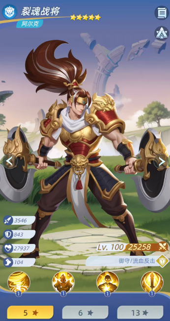 裂魂战将:也叫做阿尔克,单体的技能可以对前方单体敌人造成298%的物理伤害,还有50%概率附加1层流血让敌人持续受我方的影响,并提升自身10%免伤和10%防御,如果他受击的话,其实这里有很大的几率可以触发反伤,他受击将有60%概率反击,并有40%概率对反击目标附加1层流血效果,并且在每回合开始的时候,有50%概率驱散自身的减益状态,所以在这里阿尔克自身的能力当中也是具有驱散的增益可以用的。