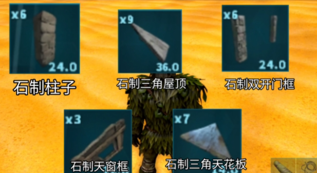 首先确认基础建材清单——需准备石柱×12、天窗×4、门框×8、三角屋顶×2、三角天花板×若干(建议备足20片以上)。选址应选地势平坦、视野开阔且无斜坡干扰的区域。起建时,沿水平轴线放置4根石柱,确保自动吸附对齐;随后移除中间两柱,在左右两端各叠加3根石柱,形成两侧高度一致的双层承重基座。