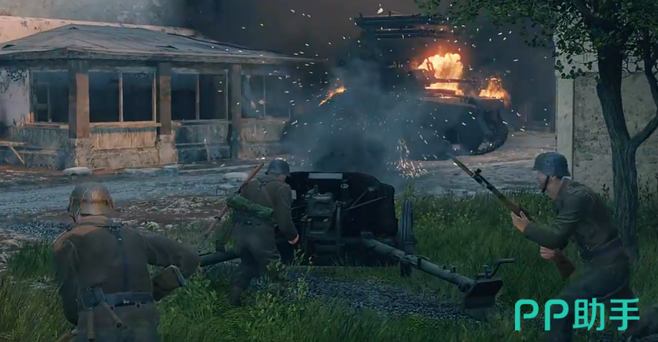 游戏高度还原1940年代历史细节:武器装备严格参照真实型号建模,载具包括T-34、谢尔曼、Ju-87等经典机型;士兵制服、徽章、单兵装备均考据严谨;战场环境涵盖东欧白桦林、中欧石砌村庄、西线混凝土堡垒群等多种地貌。画面采用PBR物理渲染技术,建筑裂痕、弹孔凹陷、碎石飞溅等细节清晰可见;音效系统支持空间音频定位,枪声回响、炮击震波、战机掠空声效层次分明,强化临场代入感。