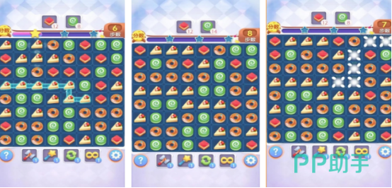 经久不衰的消除玩法为主,包括不同类型的甜品,比如有奶油蛋糕或者是甜甜圈等等,这些甜品物品都会随机摆放在屏幕当中,每个关卡都有具体的任务要求,比如在规定的步数之内需要完成全部的消除任务,或者是达到目标的要求。完成通关之后,给大家带来既解压又益智的体验感。