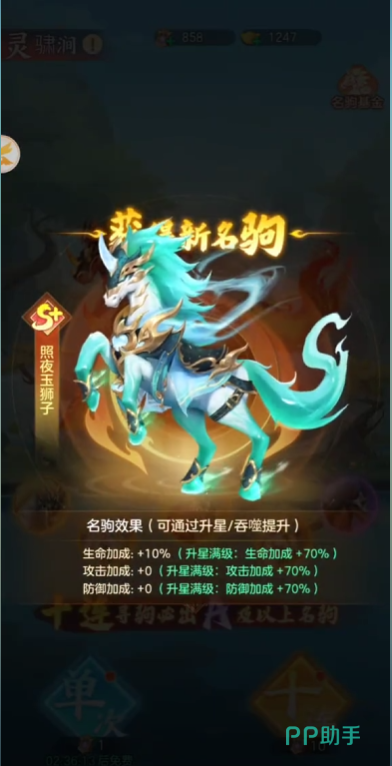战马获取渠道丰富,涵盖主线关卡通关奖励、每日签到累积、限时活动兑换及专属副本产出等。其中,“灵骕涧”为战马定向抽取的核心场景,玩家可通过消耗“寻驹令”参与抽取。寻驹令可通过日常任务、资源副本、跨服玩法等多种途径稳定获取。当前游戏内战马按功能定位划分为三类:进攻型、防御型与辅助型。每类战马均配备专属主动或被动技能,且初始附带一条随机属性词条,包括伤害率、免伤率、格挡率、治疗率等。词条类型与品质(如白、绿、蓝、紫、橙)直接决定其实际增益效果;若词条与战马本职定位或所配武将技能链不匹配,将大幅削弱养成价值。因此,词条洗练是战马进阶不可或缺的关键环节。