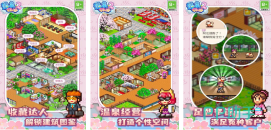 自己的温泉旅馆正式营业,在营业之前已经做足了各种准备工作,建设了特别温馨的客房以及繁华的店铺,还致力于为更多顾客提供较好的服务环境,打造出专属的温泉乡。其中的建筑图鉴特别丰富,大家可通过逐渐解锁的方式设计出与众不同的温泉乡,比如有寿司店或者是拉面店等。
