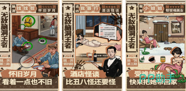 无敌脑洞王者是款很有辨识度的解谜互动游戏,美术风格复古怀旧且解谜故事也相当好玩,形形色色的场景呈现也有着无厘头的设定,找茬模式、文字解谜这些很有意思的操作更是亮点,极高的互动性、辨识度和参与感是这款手游的标签,解谜游戏高手不妨在这款高分益智手游中挑战下。