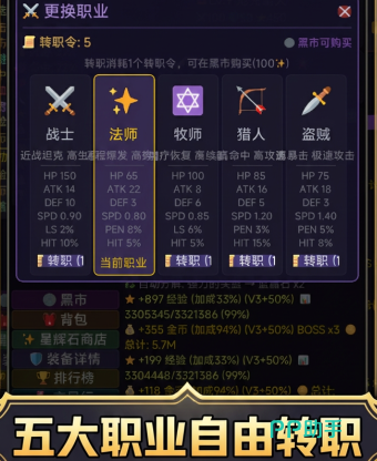 开局阶段,玩家需从五大初始职业中选定其一作为角色起点。每个职业均设有独立的成长路线与转职分支,支持多次自由切换,无锁定限制。开荒策略高度依赖玩家对职业特性、属性加成及技能协同逻辑的理解,强调前期规划与长期养成的平衡。