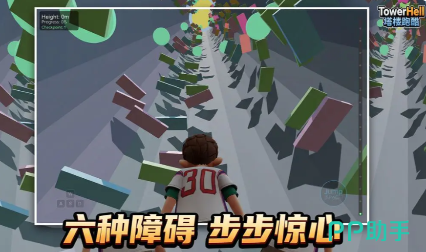 采用第三人称追尾视角设计,兼顾视野广度与操作精度,便于实时识别前方平台状态变化。同时支持本地及在线多人同台竞技模式,可与好友同步进入同一塔楼场景,比拼最终登顶高度与通关用时,强化社交协作与对抗体验。