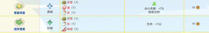 入门级食谱以低门槛、高实用性为特点,适合开服前3天快速建立资源循环。番茄炒蛋仅需番茄、鸡蛋、盐三样基础材料,野外采摘+鸡舍产出即可稳定供应,食用后可恢复中量体力,是跑图间隙首选。酸辣土豆丝由土豆、醋、辣椒构成,除恢复效果外,对偏好辛辣口味的NPC(如铁匠阿木)赠送时好感增幅明显。凉拌苜蓿仅需苜蓿、盐、辣椒,苜蓿在镇郊草地高频刷新,制作耗时短,是前期过渡期最省资源的即食料理。糖炒板栗使用板栗与糖组合,板栗散落于沙丘与枯树林区,糖可在杂货铺直接购得,成品兼具饱腹与轻度耐力加成,适合长线采集前携带。