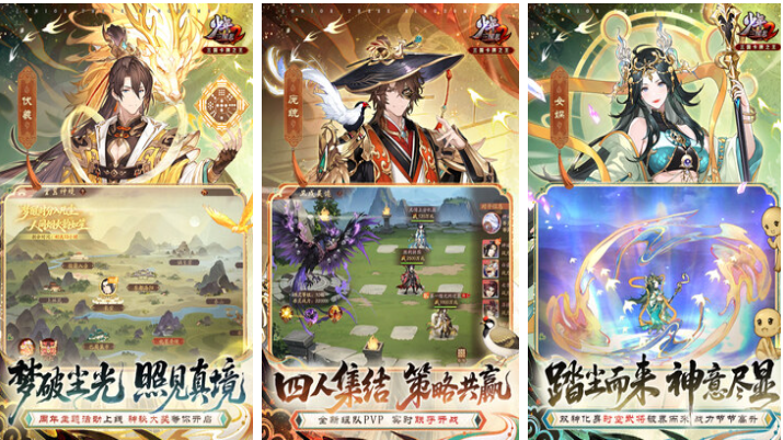 延续水墨国风基调,场景采用晕染技法营造空间纵深感。角色设定为“少年态”历史人物,弱化年龄感强化成长叙事;战斗系统嵌入“神将合击”“天命共鸣”等独创机制,阵型选择影响技能触发概率与伤害倍率,策略颗粒度精细。
