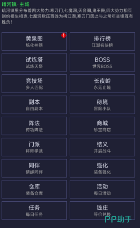 国风文字冒险RPG,融合放置挂机与开放世界探索机制。手绘风格界面呈现水墨质感,主线剧情围绕江湖恩怨与封印邪祟展开,玩家通过点击选择影响角色立场与关系网。地图采用非线性文字节点设计,支持自由回溯与多线并行推进;内置数百种武学秘籍,涵盖外功招式、内功心法、轻功身法三大体系,所有功法均可组合修炼,形成个性化成长路径。