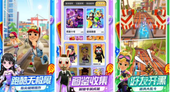 全球知名跑酷IP移动端作品,采用无尽滚动式关卡设计。玩家操控角色在各国地铁轨道间穿梭,通过滑动屏幕完成跳跃、下滑、左右闪避等基础操作,规避列车、障碍物及追捕警员。难度曲线平滑递进,后期速度显著提升,对反应力与节奏感提出更高要求。支持离线模式运行,冰雪世界等主题版本已实装,道具与皮肤系统完整保留。