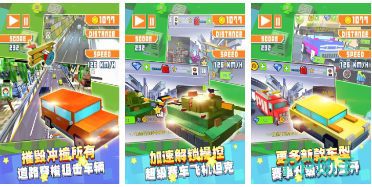 以先锋美术风格重构竞速表达,赛车造型突破传统比例限制,强调流线张力与视觉冲击。任务系统融合解谜元素与极限竞速目标,如限定时间内触发特定连击动作、规避动态障碍物阵列等。粒子特效与音画同步精度高,尤其在高速碰撞瞬间呈现多重图层破碎动画,强化感官刺激层次。