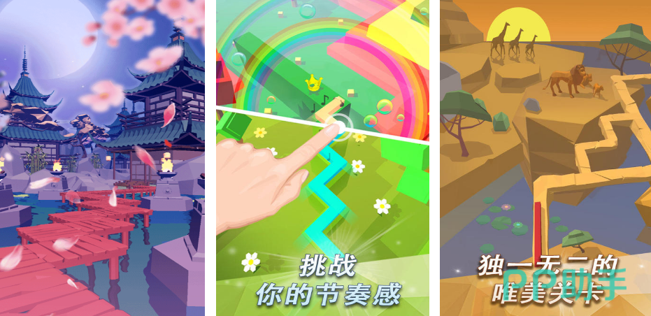 这是一款强调视听同步的竖屏节奏冒险游戏。场景采用立体建模设计,一条持续延伸的线条随音乐律动前行。玩家需在恰当节点点击屏幕,使线条依地形转折、跃过障碍并抵达终点。关卡背景随曲风实时变化,营造出兼具艺术感与挑战性的沉浸式体验。