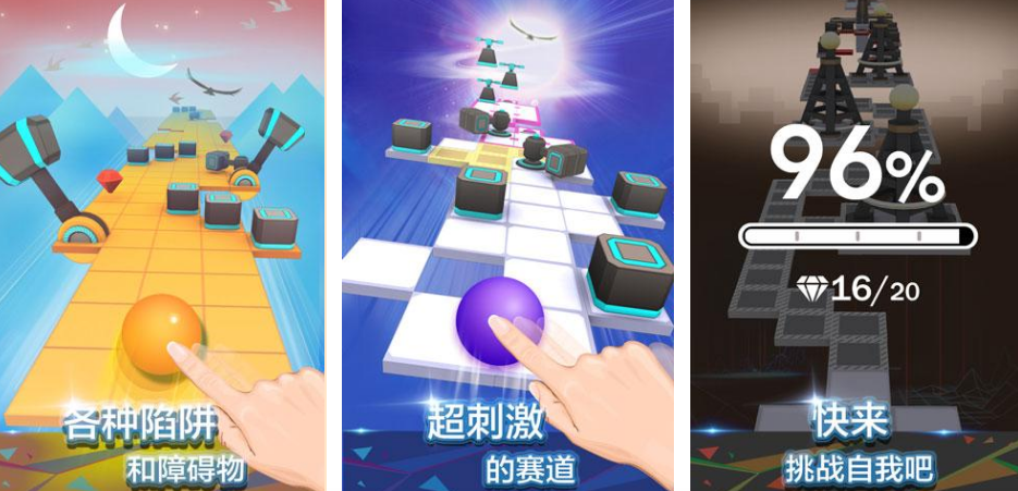 本作以色彩鲜明的动态球体为交互主体,玩家需依据节拍精准触控,引导球体沿轨道滑行。游戏内置多档难度谱面,支持按个人水平自由切换曲目;通关后可逐步解锁单曲包与完整专辑,并获取专属成就徽章,完整记录成长轨迹。