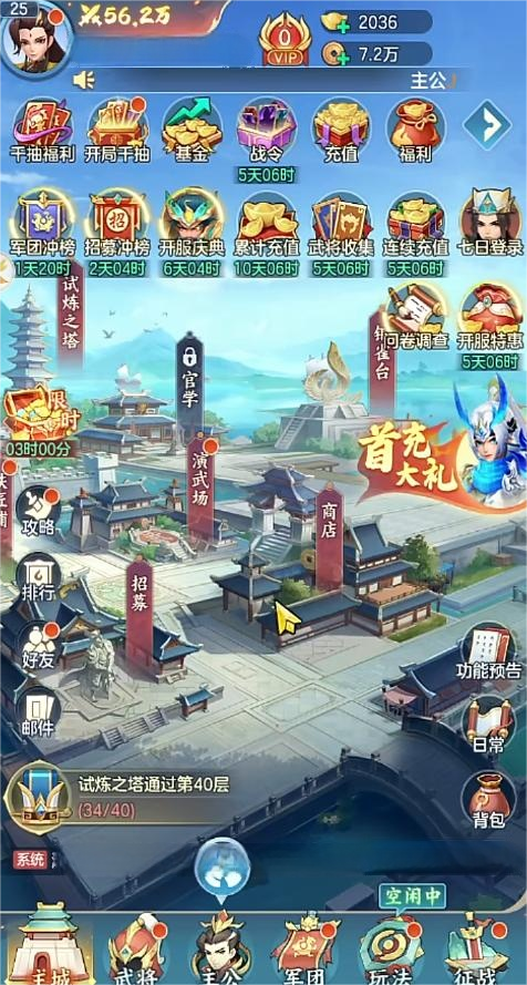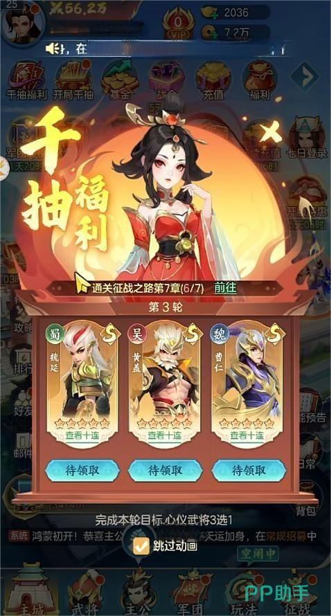 此外,七日登录奖励同样诚意十足,首日即赠S级核心武将诸葛亮。该角色具备全场景适配能力,技能组合覆盖输出、控制与辅助多重职能,成长曲线平滑,培养性价比突出,是新手过渡与中后期阵容补强的理想选择。