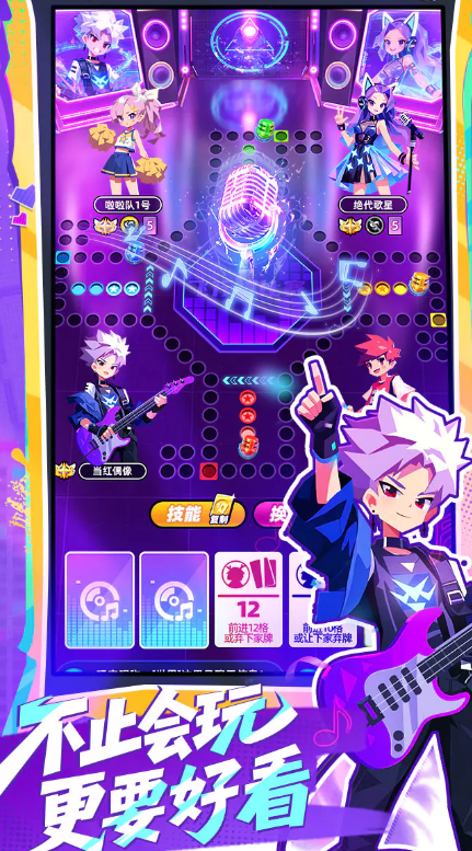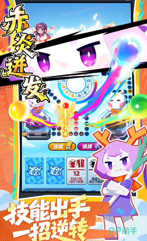 游戏在传统飞行棋机制基础上进行了深度拓展:每位可选角色均配备专属技能,涵盖加速移动、路径干扰、防御反制等类型。当玩家投出骰子后,将根据点数与当前角色特性触发对应效果,技能之间还可形成连携反应,显著提升战局变化节奏与策略纵深感。