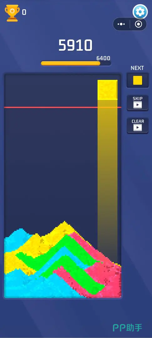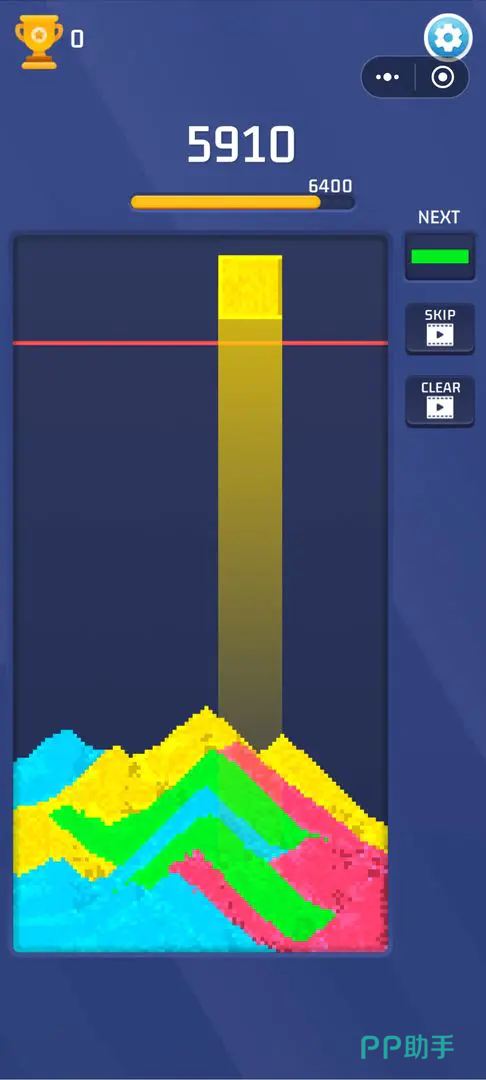 当同色沙粒成功贯通画面两侧边界时,整条连通链将即时消除,并结算对应分数。随着关卡推进,沙块下落速度逐步加快,多色混排频率提升,同时地形结构持续变化,对空间预判与实时操作提出更高要求。