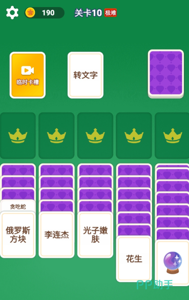 游戏核心玩法为纸牌归类,但每关归类逻辑各不相同——可能是按颜色、图形、数量、对称性或隐藏规律进行匹配。前期关卡注重引导教学,节奏舒缓;随着进度深入,主题场景持续更新,关卡难度呈阶梯式提升,中后期将逐步融入基础逻辑推理与模式识别要素,兼顾休闲性与思维锻炼价值。