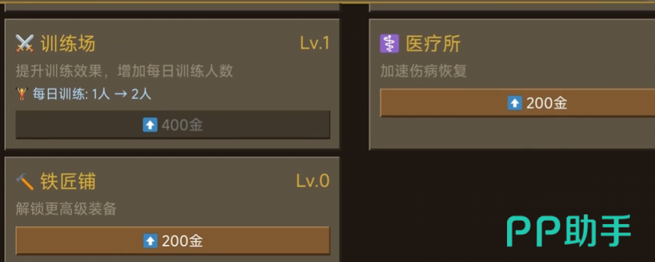 游戏内设有多维度成长体系:包括战士职业分化(如重盾手、迅击者、策士等)、可自由搭配的武器防具系统、体能/意志/技巧等属性训练路径,以及影响战局表现的士气与健康值管理机制。玩家需在训练、休整、竞技准备之间动态平衡资源分配。